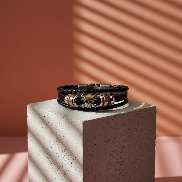 One Piece Skull Leather Bracelet Unisex Anime Jewelry for Fans
